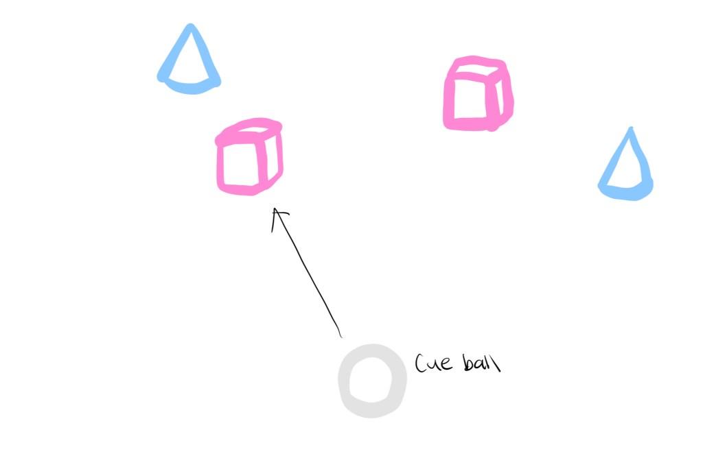 Inspired by pool ball game, my initial idea is to create a variant of pool ball game, where objects would change their colours and shapes.