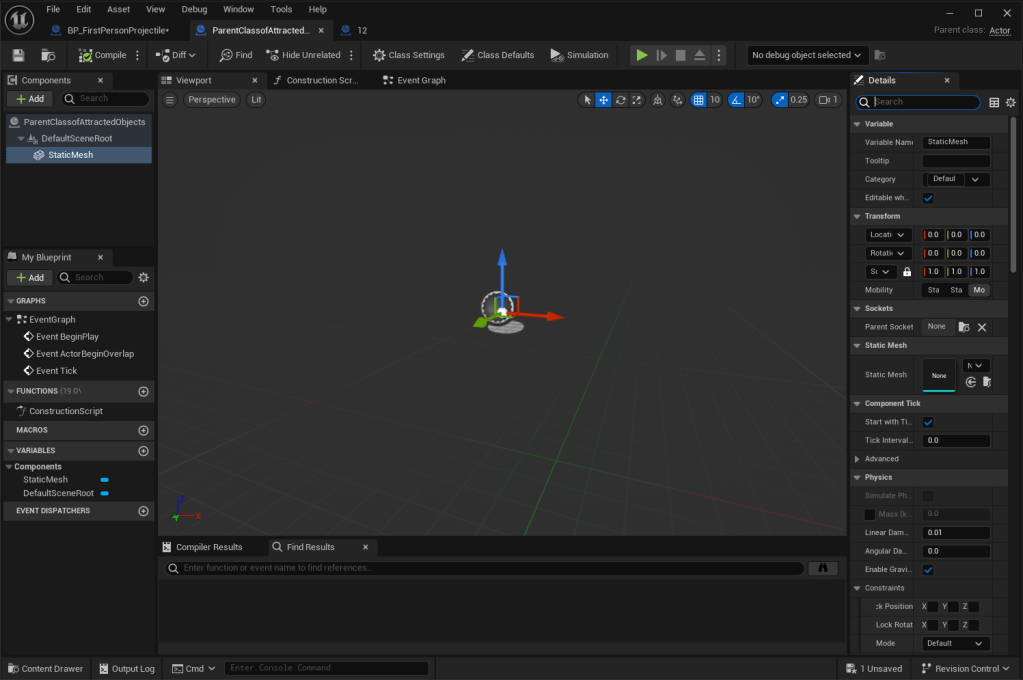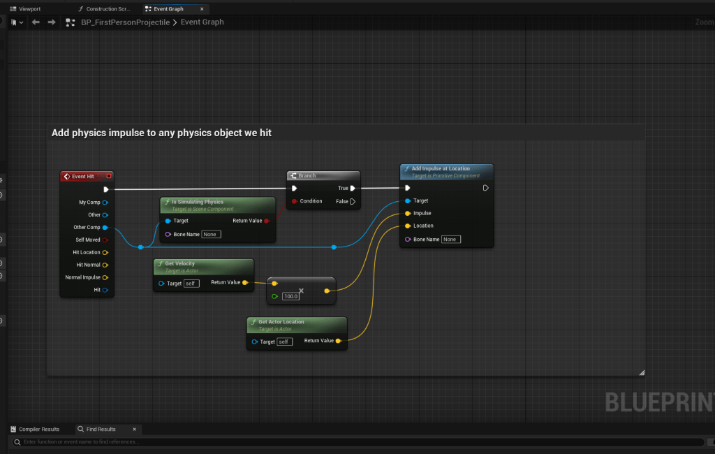 Code: For now the objects are at the same height as the projectile. I hope the objects can distribute on z axis as well. It may be able to be solved by adjusting the properties of the projectile or the blueprint.