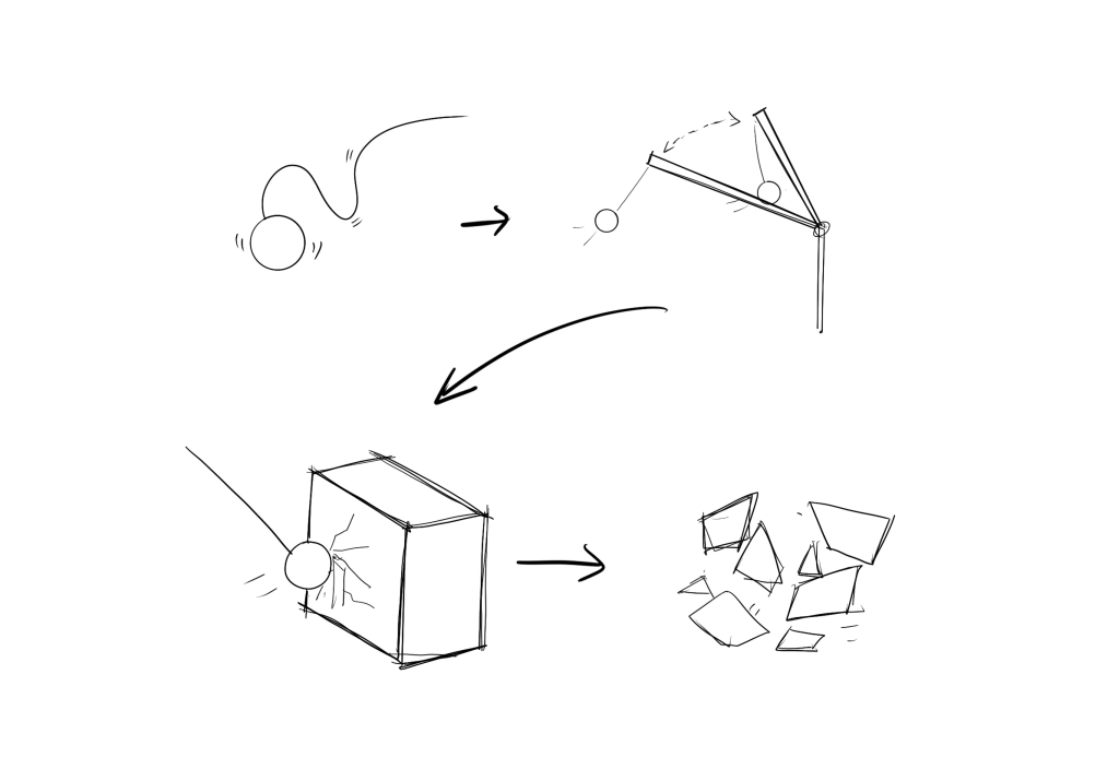 Hit an object with a small ball bound by a string and cause it to be damaged.