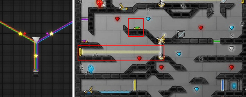 Inspiration: In this game, when the red or blue character stands on the trigger button, this spot light will be ignited.