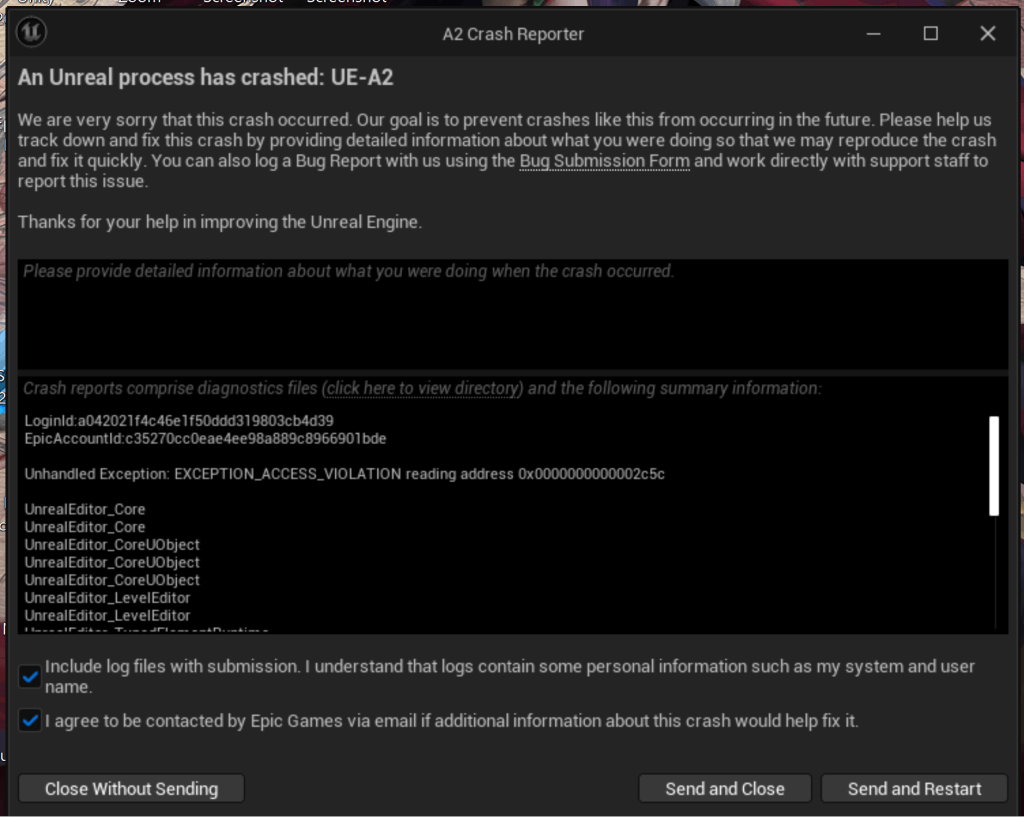 Not sure why UE5 keeps having a crashing issue. Also once I close the project, it won’t be able to open again, which made me need to recreate everything over again if it crashed.
