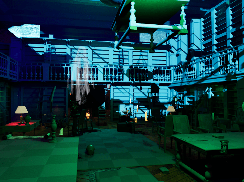 This game allows the player into a captivating magical library setting. Embark on an adventure through this enchanted space, with the ultimate goal of escaping the area while avoiding animated furniture. Players are unable to see the environment fully even with the light that is provided. They have to avoid the animated furniture base on the sound and little sight they have.