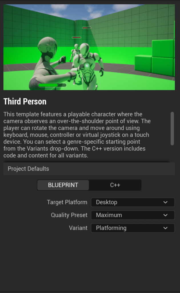 Tutorial was based on the third person perspective, so I have kept working with third person perspective. I guess perspective does not matter that much because users always can change the camera angle or even add different perspectives by adding more cameras.