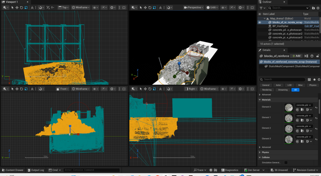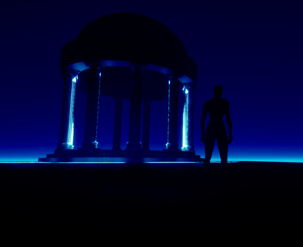 Asset Challenge: The Classical Greek Temple. The intricate, overlapping geometry of fluted columns and ornate capitals made the ‘Sphere Void’ masking incredibly difficult. I had to ensure all meshes were strictly watertight. This was necessary so the volumetric fog and procedural material transitions didn’t break. It also prevented Z-fighting during the 4D Shift.