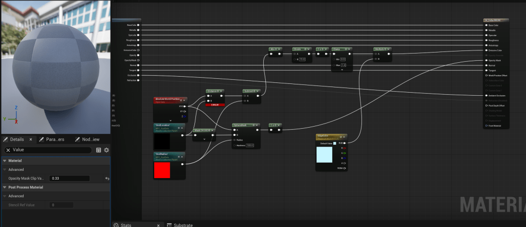 Material Challenges (The Parent/Grandparent Hierarchy): The most significant technical hurdle involved retrofitting the downloaded assets. These assets had to work with my custom “4-D Shift” logic. High-quality assets come with their own complex Material Instances (Children). To make my Sphere Void effect work across the entire level simultaneously, I couldn’t just edit individual assets. I had to drill down into the Master Materials (the “Grandparents” of the hierarchy).