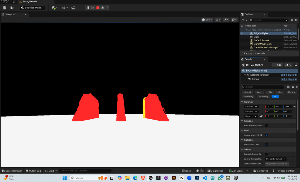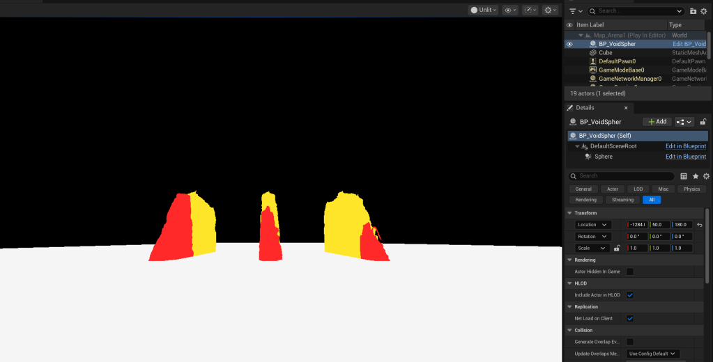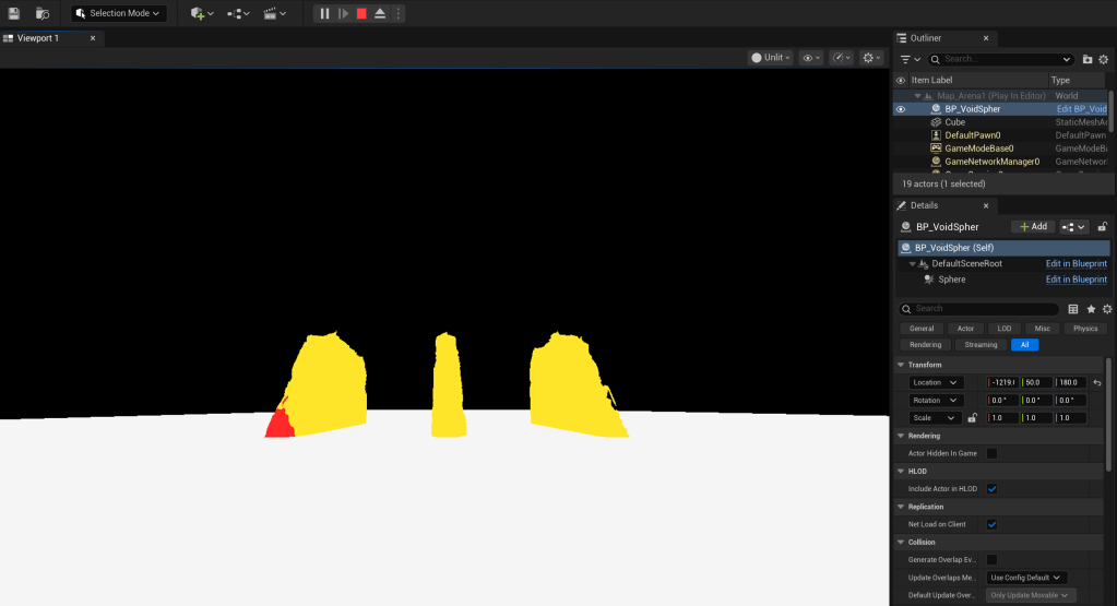 Testing spatial flow and collision logic in the “white room” phase before applying heavy materials. Z-axis shift of void sphere